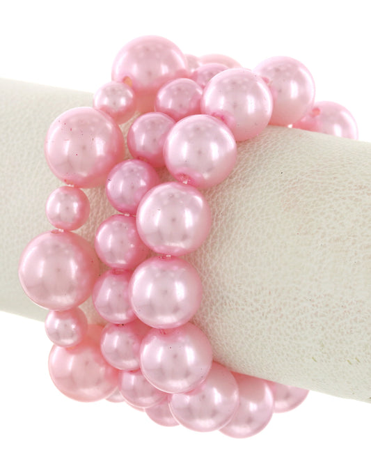 PINK MULTI STRAND PEARL NECKLACE AND BRACELET SET