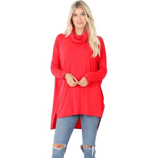 PLUS COWL NECK LONG SLEEVE HI-LOW TOP