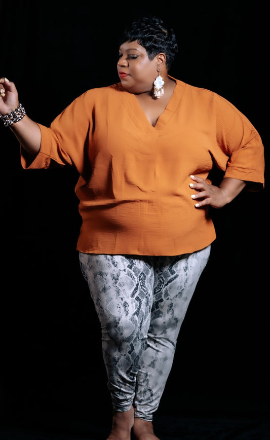 WOVEN AIRFLOW V-NECK DOLMAN 3/4 SLEEVE TOP
